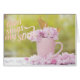 文字のマグカップで美しいチェリーの花と愛らしい編集可能なグリーティングカードのデザイン"そして私の魂を歌う"そして背景に素晴らしい緑の光。カスタマイズ可能な紙カッププレート、ワインラベル、結婚式招待状、保存の日付の招待状、方向、宿泊施設と情報カード。人生で最も美しい一日に必要なものすべて。これが最高のお前の特別な日の第1番デザインだ。ロマンチックな結婚式のためのカスタマイズ可能な招待。UtARTによる愛で作成