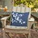 さくらんぼブロッサムネイビーブルーホワイトフローラ アウトドアクッション