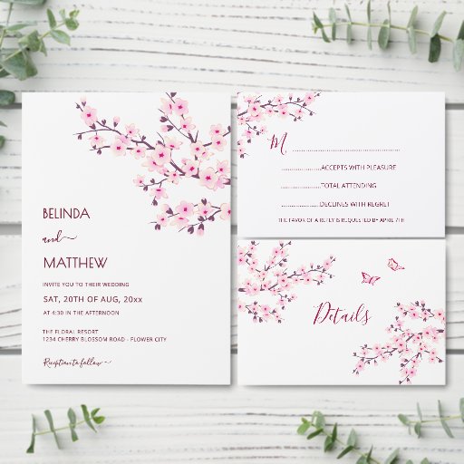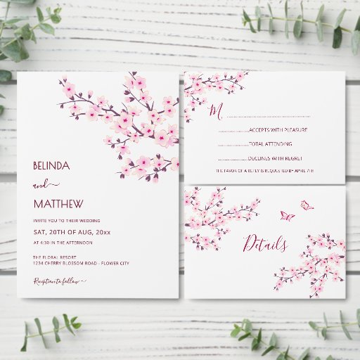 ピンクかわいらしのさくらんぼの花と白い背景に2つの可愛い蝶。手書カスタムきの台本の中の新婦と新郎の名エレガント前。クリックもし:テンプレートをパーソナライズカスタマイズし、前面と背骨の文字を一緒に作成する。これもし以上の変更を行うか、前面と脊椎の文字を別々に行う場合は、[レイヤ]セクションに移動しクリックて[デザインを編集]をオンにしてください。