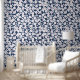 さくらんぼブロッサムフローラホワイトオンインディゴブルー 壁紙