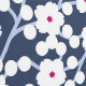 暗ユニーク色の藍色の紺色の背景に白いさくらんぼの花の柄を打つ。オリジナルアートby Nic Squirrell.