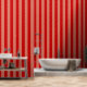 さくらんぼ赤の埃っぽい桃の非常に広い4インチの均一な壁ストライプの紙。