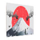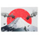 日本の新シーズンの誕生。桜さくらんぼの美しいイラストレーションと花びらが風に舞い降り、山の富士と日本の朝日の旗の背景。クリスマス動揺してのプレゼモダンント、バースデーギフト、子供部屋の装飾やホームデコールに最適な完璧なアートデザイン。