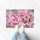 美しいピンクのさくらんぼの花のドアマット。日本、東洋の花。ピンクのツリー写真。ホームインテリアに最適。