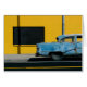 さびた青の車と黄色の壁