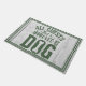 「お客様おもしろいは全て犬に許されモダンなければならない」と言う愛犬家機能とトレンディータイポグラフィのためのキュートでウェルカムマット。 文字とダブルは縁どセージグリーンで、背景は灰色の納屋の木のスタイルを特徴とする。犬を飼っている人のための完璧なギフトアイディア。