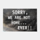 これはおもしろい失礼なことわざ抽象芸術の暗い色のフォーマットは、'ごめんなさい、私たちは家ではない…EVER!!'大きな白い文字で。