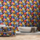 そしてはっきりした鮮やかな赤い黄色の青い白い花模様 壁紙