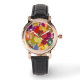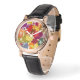 この女性時計は黄色のフィールドに葉緑、黄、オレンジ、青、茶色、赤の山のデザインを持淡い色のつ。