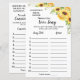 愛する曲のブライダルシャワー英語とバージョンスペインのゲームを含む(フロントとバック)。BrideをNameに変更して、英語とバージョンのテンプレートをスペインの作成。よりカスタマイズ(曲の数やその他の文言、フォント色、フォントスタイルの変更)のためにクリックは、パーソナライズで、スクロールダウンし、リンクでクリックは「これ以上にクリックはTTTECD」を行う。HOW 遊 TO:10の愛の歌とゲストは各曲のタイトルとアーティストを推測する。