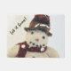 ドアマットのフレンドリーな雪だるまの写真。