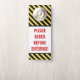 メッセージが"入る前に!"たたくこの設計特微 黄色および黒と共にはっきりしたで赤い文字では、警報を縞で飾ります着色しました。