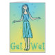 雨に立つシンプルな喜びを楽しんでいる女性。 手切り分けられたスタンプのデザインはSarkによってことわざに基づいて電子芸術に変えました