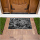 ねじれた正方形、グレーと黒の「ブラシストローク」 ドアマット