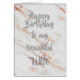 "ハッピーバースデー"に妻をあなたに望むため洗練されたカード。 のどの傾向に、薄い灰色の文字の読書と、"私の美しい妻へのハッピーバースデー"。があるばら色の金ゴールドの大理石のデザイン、