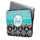 のティール(緑がかった色)ガーリー、黒いダマスク織はパーソナライズなぴかぴか光ります ラップトップスリーブ