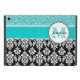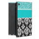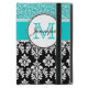のティール(緑がかった色)ガーリー、黒いダマスク織はパーソナライズなぴかぴか光ります iPad MINI ケース