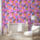 はっきりしたピンクのフローラモダン抽象芸術かわいらし壁紙。家カラフル鮮やかの装飾、ベッドルームの装飾、バスルームの装飾のためのピンクの壁紙。そしてユニークトレンディーホーム装飾のためのオリジナックカラフル壁紙。