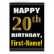このシンプルの誕生日をテーマにしたグリーティングカードデザインは、黒い背景の文字で、フロントに「HAPPY 20誕生日、ファーストネーム!」のような暖かい誕生日の願いをはっきりした特徴としている。誕生日の番号はフェイク/模造金ゴールドのような着色の外観を持つ。正面の名前は以下の通りカスタマイズだ。内部には可能な誕生日メッセージがパーソナライズされたある。このようなグリーティングカードは、20歳の誕生日を迎える人に誕生日の願いを伝えるおもしろい祝の手段である可能性がある。[~Z0000275]