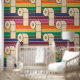 小さなハートでレトロなベージュの白いトイレの紙と転がこのおもしろいの壁紙であなたのバスルームを明るくするストライプの。