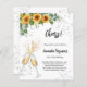21モダン日(まスタイリッシュたは大人の誕生日)の魅力的な招待。白い背景に泡、笛、グラス、ヒマワリとユーカリの緑のペア。名前は手書文字のスタイルスモダンクリプト付き。カスタマイズしてパーティー詳細を追加する。1枚= 1枚の招待状を印刷したエッジからエッジ