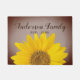 灰色と茶色の背景にの苗字とカスタム設立の年を持つ明るい黄色のひまわりのクローズアップグラデーション写真。家カスタマイズ名と年を編集。