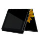 iPad 2/3/4ケースはジェットブラックで行わかわいらしれ、大きな黄色のひまわり開花の写真。ケースの前面にある黄色の文字を、ニーズに合わせてパーソナライズする。
