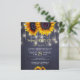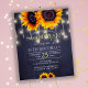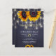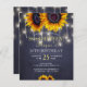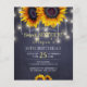 フローラエレガントsweet sixteen16th誕生会の招待予算手頃夜の夜の夜の夜のネイビー青いシャルボード上の招待の夜の金ゴールドひまわりの花の花束とtwinkleの光の文字列を特集。+++++招待は夏の秋の秋屋外ガーデンバックヤードひまわり誕生日パーティーにに適している。