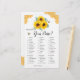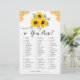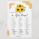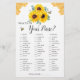 このブライダルシャワーのゲームカードは財布の中に何があるか。このデザインは、ヒマワリ、ユーカリフローラ、ハチミツ葉ビおよびハニカムを有する水色のデザインを特徴とする。花嫁の名前でカードの背面をパーソナライズ。一致するブライダルシャワーパーティー供給も利用可能。