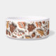 ふくれた秋の落ち葉とどんぐりのタイルに名前が入ったモダンなペット用食器 ボウル