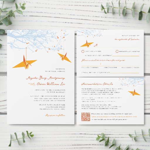 ぶら下がったの折り紙オレンジ紙クレーズアジア結婚ズ 出欠カード