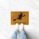 ほうきのシルエットのハッピーハローウィン魔法使い及び猫 ドアマット