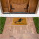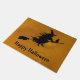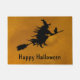 ハロウィン、魔法使いおよび猫好きのためのおもしろいそして恐いドア・マット! 飛行中に彼女のほうきの魔法使いの詳しく黒いシルエットと設計されている。 当然彼女の幸運の黒猫はおもしろいの夕べの間魔法使いの前のほうきで、用意します置かれます! ハロウィンの黒く不気味なフォントおよびハロウィンの願い"ハッピーハローウィン"は黒いシルエットの下で置かれます。 背景は魔法をかける満月をまねるまだらにされたオレンジです。 ハロウィンの季節のためのあなたの通路に服を着せる楽しい方法!