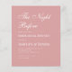 ミニマシンプルリストのほこりっぽいバラのリハーサルのディナーの招待。ほこりっぽいバラの背景に白い文字がある。題名「前夜」は書書物エレガント。文字離れが揃った。