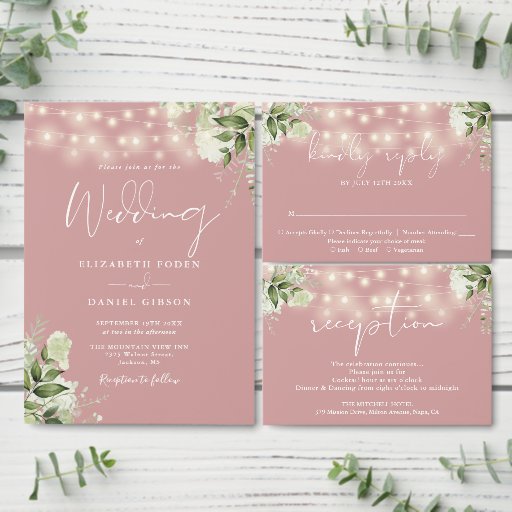Dusty Rose String Lights Floral Wedding Collectionデザイン: Thisisnotme Designs