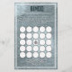 この男の赤ちゃんの赤ちゃんシャワービンゴカードは、美しいながらもはっきりしたアートデコスタイルデザインを備えている。ビンゴルールは、古いワールドスタイルフォントを使用してトップセンターに表示される。主な見出読しとして「BINGO」。背景には、ヴィンテージフェイクスタイルのスクロールアートワークがカードの下部にフレーミングされたテクスチャの青い波状デザインが含まれている。このカードは「ありがとう」とフェイクいう言葉で、ほこりっぽい青いテクスチャーの背景だけに逆向きしている。