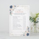 トレンディーモダンダスティブルーと赤面ピンクの緑の水の色の花模様、手書きのスクリプトのタイポグラフィと金ゴールドの塵を特集したエレガントブライダルシャワーゲーム"オーバーまたはアンダーゲームの問い合わせフェイク。プリントは現状のまま、またはあなたのゲームの質問をパーソナライズ。コレクションスイートの一部。https://www.zazzle.com/collections/light_dusty_blue_blush_pink_gold_wedding_suite-119156539216388938 Copyright Anaastasi Surridge for エレガント招待状, all rights reserved.