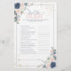 エレガントブライダルシャワーモダンゲーム「ゲストを見つける」トレンディーほこりっぽい青と赤面ピンクの緑の水の色花模様、手書きのスクリプトタイポグラフィと金ゴールドの塵を特徴フェイク。プリントは現状のまま、またはあなたのゲームの質問をパーソナライズ。コレクションスイートの一部。https://www.zazzle.com/collections/light_dusty_blue_blush_pink_gold_wedding_suite-119156539216388938 Copyright Anaastasi Surridge for エレガント招待状, all rights reserved.