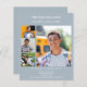独自の写真ユニークコラージュを作成4枚、4枚の写真を使お気に入りの用する。名前とパーティー・詳細のパーソナライズおよび追加ほこりっぽい青の背景、白い文字。1枚= 1枚の招待状を印刷したエッジからエッジ