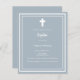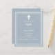 白い枠と白いクロスでほこりっぽい青い背景をパーソナライズし、名前と詳細を追加する。白文字。