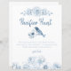 この保ほこりっぽい青い狩りのゲームのサインで楽しめエレガントるゲスト。繊細な花模様と甘い鳥のイラストレーションを備え、おもしろいとインタラクティブなゲームを通してゲストを案内しながら、赤ちゃんのシャワーに魅力を追加。お客様のテーマに合わせてカスタマイズ可能