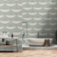 ほこりっぽい青の中性の鳥の鶴のアールデコパターン 壁紙