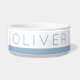 ダスティ・ミュート・ペリウィンパーソナライズされたクル・ブルーの猫、犬、ペットの名前を付けミニマル、底にモダンを付けた食べ物や水シンプル器ストライプを付けます。色やフォントは、の「さらに」クリックに変カスタマイズ更して、ペットのボウルをデザインできます。