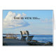 Marginal Wayから見た沿岸メイン州Ogunquit。空の公園のベンチは水の側に座り、外にメッセージ:「神はあなたと共に」を表示する。中には「再会するまで」という言葉がある。 時間の移動または移動しているクリスチャンの友人のための美遠くにしいカード。