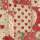みすぼらしいシックな赤いパッチワークの壁紙。カントリーかわいらしファームハウスコテージスタイル。美しい赤いハート、水玉模様、フローラ無料コンビネーションミックス。