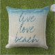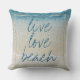 美しいコンテンポラリーティール(緑がかった色)ターコイズ青い海サーフ波とビーチショア。おもしろい'LIVE LOVEビーチ'文字引用文。