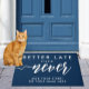 スマイルとユーモアのtouchを持つウェルカムドーおもしろいマットでゲストを歓迎。ネイビーモダンブルーの背景に白い手書きよくはしゃぐフォントを搭載しスタイリッシュてエレガント、「Better Late Than Never」というメッセージはおもしろいのねじれを任意の入り口に追加する。この形式は、あなたの家のデコ魅力的アに追加するだけでなく、完全にカスタマイズ可能である。自分のアドレスやその他の文字を表示したい場合など、自分のメッセージでカスタマイズする。ちょっとしたユーモアで歓迎の雰囲気を作るのに最適。友人ユニークや家族に挨拶する実用的な方法