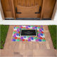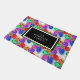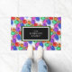 (姓を挿入)ファミリは、黒い背景に対して書、白いタイポグラフィで表示される。緑の白い幾何公差付き領域。かわいらしカラフルアートの花の模様と水の色を絵を描、赤、オレンジ、緑、ピンク、青、紫に表したもの。白い背景に対する小さな緑の幾何学円の形状。TamiraZDesignsによる原画。