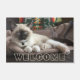 ようこそ愛らしい青い目のシャム猫 ドアマット