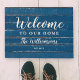 ようこそ我々のホームカスタムヴィンテージ風化木材 ドアマット